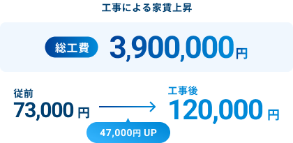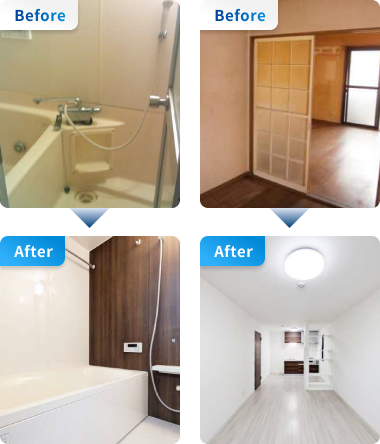 好条件のリフォームローンをご紹介可能ですので、資金的に余裕がない場合でも工事をご検討いただけます。また、当社では最低限必要な修繕か、賃料上昇(あるいは賃料下落の阻止)や売却時の利回り低下につながるなど、費用対効果をみて有効だと判断したリフォームしかご提案しません。必要のない工事費用はかかりませんので、ご安心ください。